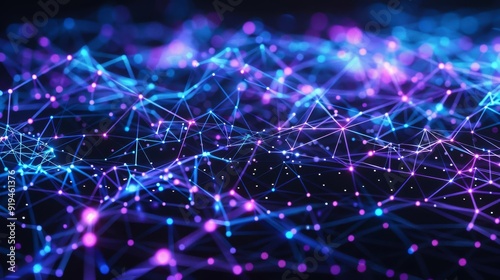Big data and cybersecurity Abstract flow of illuminated particles in shades of blue and purple