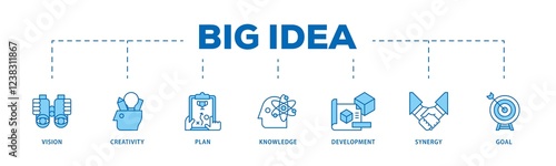 Big idea infographic icons flow process which consists of vision, creativity, plan, knowledge, development, synergy and goal icon live stroke and easy to edit .