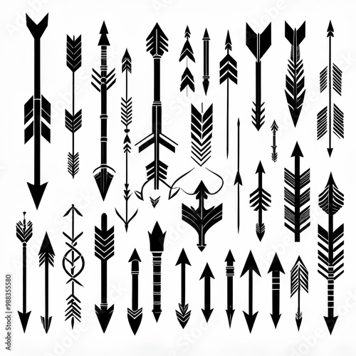 .Big set of chalk pencil, brush stroke arrows. Template grunge texture chalk pointers, hand black abstract shapes of different sizes. Collection of rough charcoal arrows