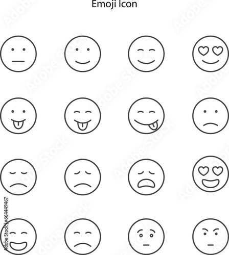 Big set of emoticon smile icons. Cartoon emoji set. Vector emoticon set, line emoji icon.
