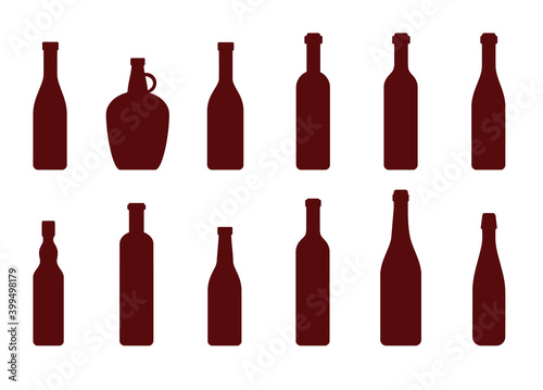 Big Set of silhouette wine bottles. Vector isolated on white background.