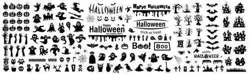 Big set of silhouettes of Halloween on a white background. Vector illustration.
