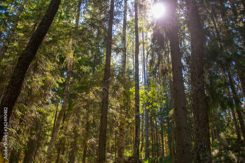 Big trees in forest. Nature. Summer background. Natural background. Sunlights