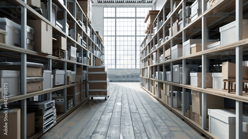 Big warehouse filled with goods. Background image. Created with Generative AI technology.