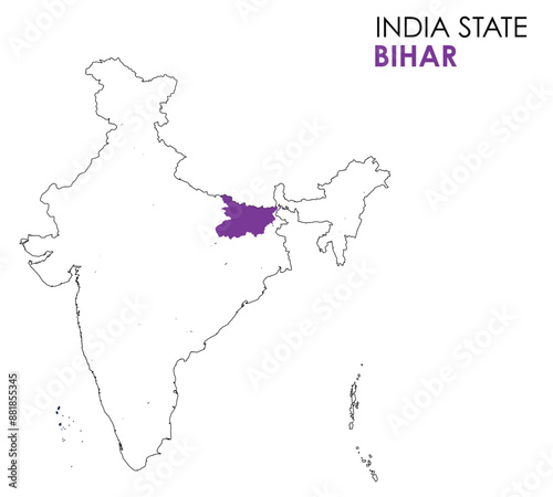 Bihar map of Indian state. Bihar map vector illustration. Bihar vector map on white background.