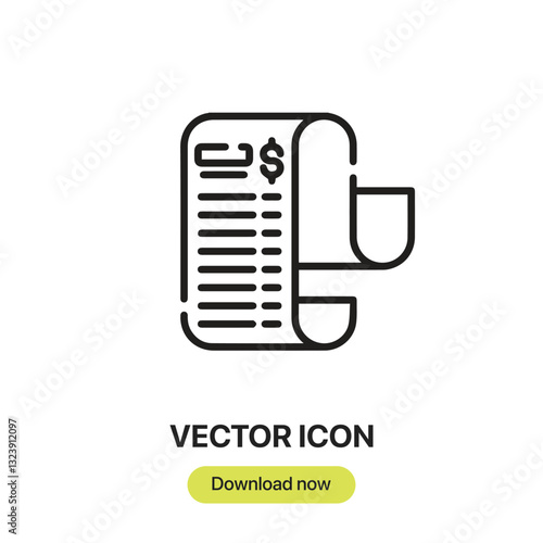 Bill icon vector. Linear-style sign for mobile concept and web design. Bill symbol illustration. Pixel vector graphics - Vector.