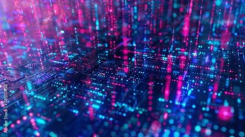 Binary code patterns and circuit board elements arranged in a modern, abstract style.