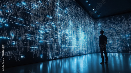 Binary numbers matrix on walls in cyberspace