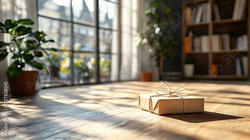 biodegradable packaging mockup with jute string seal, rustic wood background, blank tag label in focus, daylight coming from window, warm earthy composition