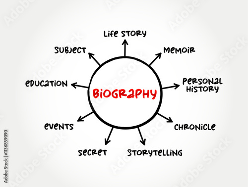 Biography is a detailed description of a person's life, mind map text concept background