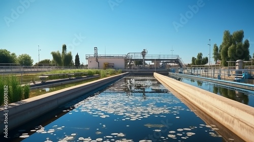 Biological water treatment plant, Industrial wastewater treatment plant purifying water before it is discharged.