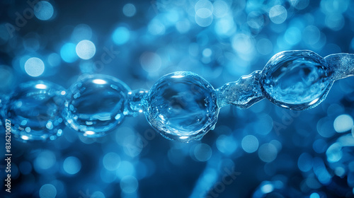 Biology, physics or chemistry abstract background. Scientific image of cell membrane. Macro up of liquid substances. Abstract molecule atom structure. Water bubbles. Macro shot of air or molecule.
