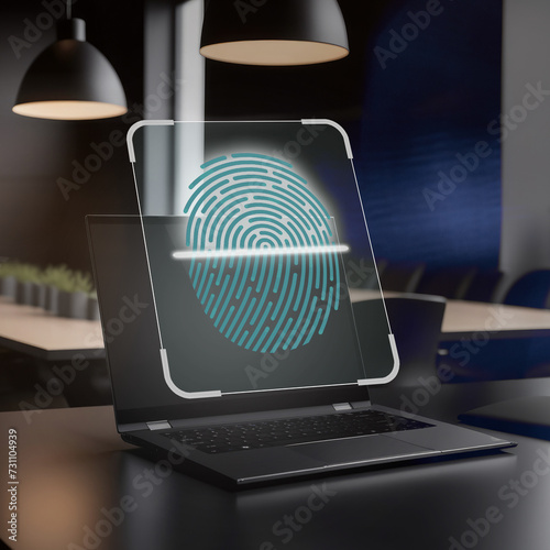 Biometric scan fingerprint. Identity approval secure online access. Cyber security internet concept