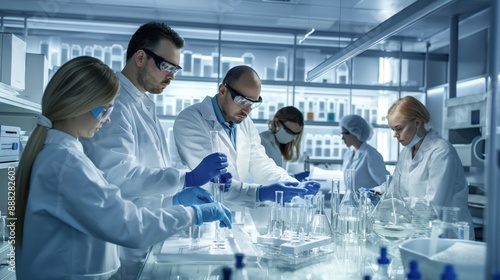 Biotech lab with scientists working on genetic engineering projects The advancements in biotechnology are paving the way for breakthroughs in medicine and agriculture
