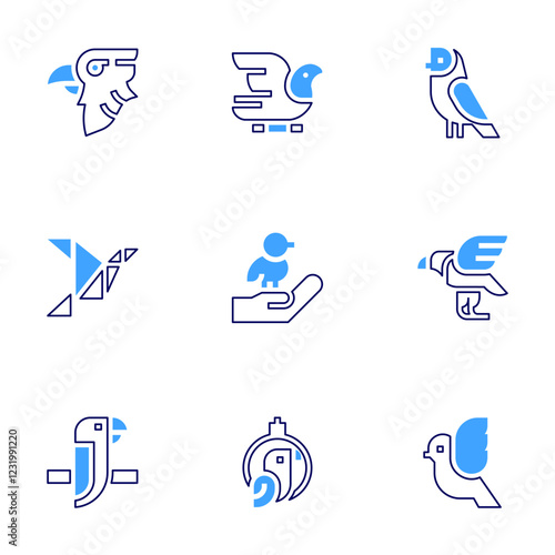 Bird icon set. Bold line style. Duotone colors. Editable stroke.-6