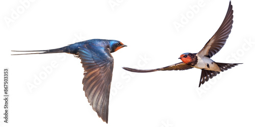bird in flight, barn swallows isolated