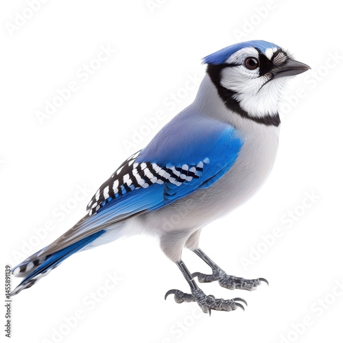 Bird perched on a branch displaying vibrant blue feathers and striking features in natural light