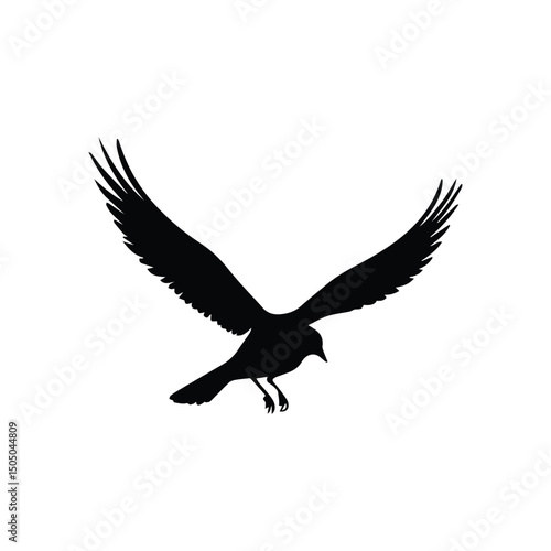 Bird silhouette in flight against a plain background. Bird in mid-air with outstretched wings, showcasing a dynamic, natural form.