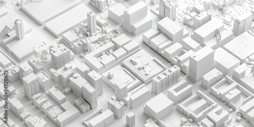 Birds Eye view of a modern city. Urban concept. White clay 3D rendering. Created with Generative AI technology.