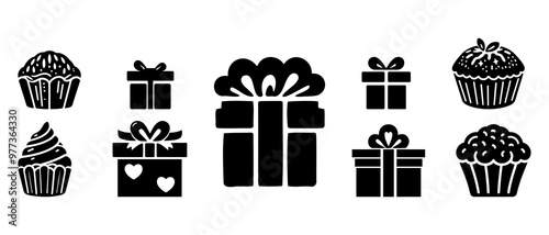 Birthday elements silhouette black filled vector Illustration icon-1
