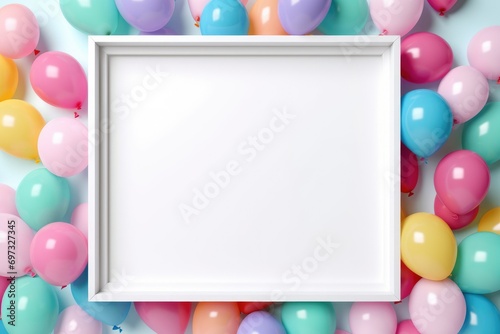 Birthday frame with color balloons with sparkles, blank frame decoration with balloon , Ai generated
