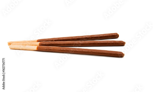 Biscuit sticks in chocolate isolated