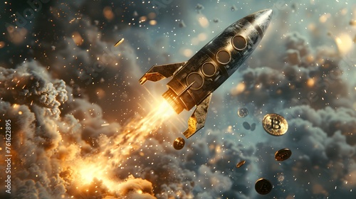 Bitcoin and cryptocurrency investing concept. Bitcoin rocket