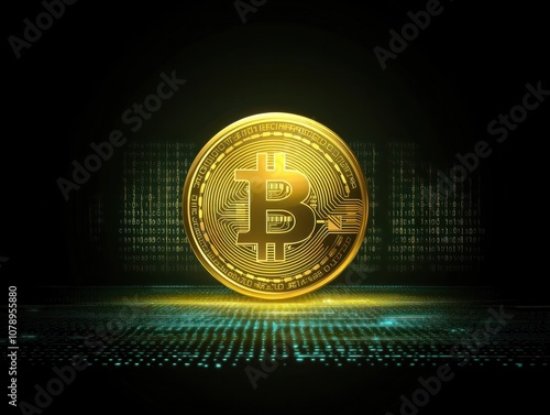Bitcoin on a digital network background. Cryptocurrency and modern blockchain technology. Electronic decentralized money concept. Digital crypto coin