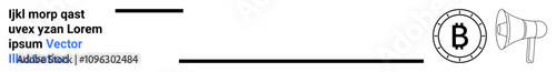 Bitcoin symbol in a circle next to a megaphone icon. Ideal for cryptocurrency, marketing, blockchain tech, digital currency, finance, investment themes. Landing page