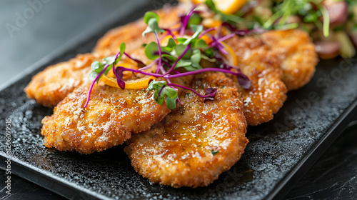 Bite-Sized Schnitzel Pieces Arranged Elegantly on a Plate
