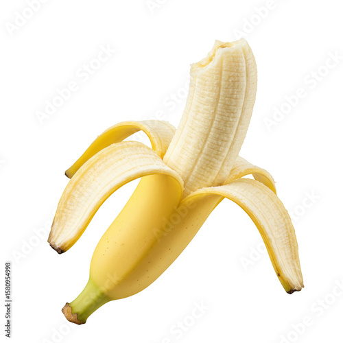 Bitten Banana in Half-Peeled Skin Isolated on Transparent Background