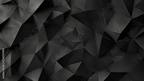 Black 3D geometric surface with intricate angles and smooth textures. Perfect for modern tech, design, or construction themes, offering a clean, professional backdrop for various projects.