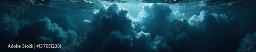 Black amorphous shapes resembling clouds, underwater , abstract, photography