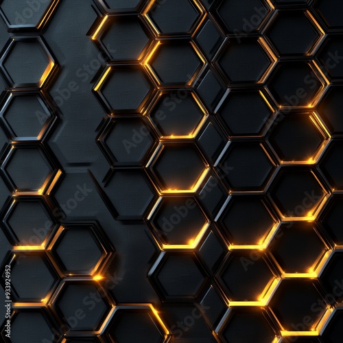Black and Gold Hexagon Pattern with Glowing Edges, 3D, Abstract, Geometric, Technology , hexagon , pattern