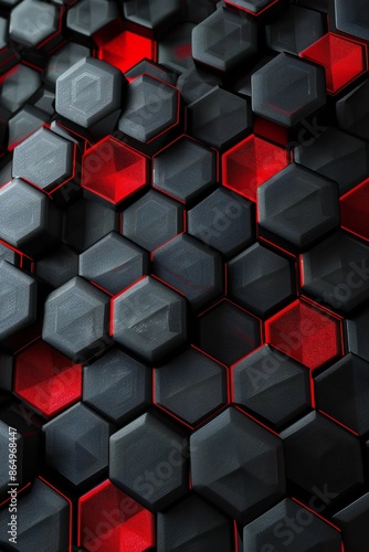 Black and red Carbon Fiber Hexagons Background Generative Ai