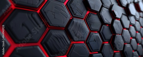 Black and red Carbon Fiber Hexagons Background Generative Ai