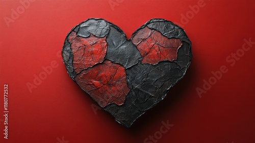 Black and Red Heart Art on Bold Red Paper Background