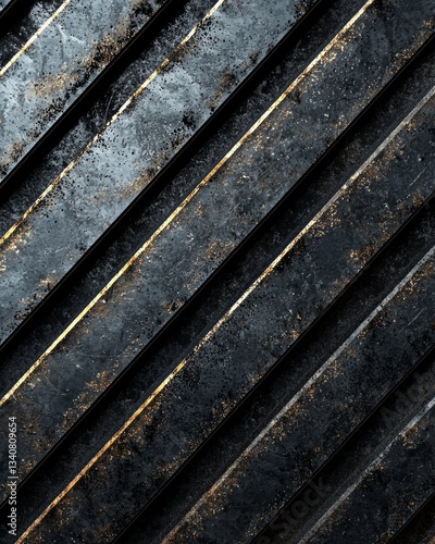 Black and silver background with diagonal lines of metal, creating an industrial texture.