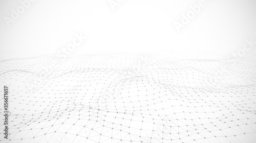Black and white background with connecting triangulars, dots and lines. Futuristic polygonal background. 3d rendering.