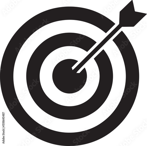 Black and white bullseye target with an arrow in the center representing accuracy success and achieving business goals