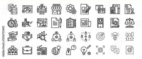 Black and White Business Icon Bundle Line Art Graphics 70 Pieces