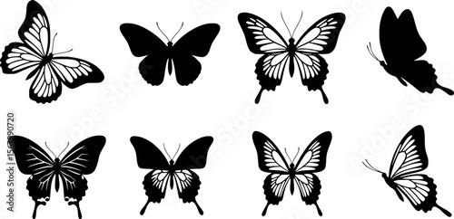 Black and White Butterfly Silhouette Design: Elegant Vector Illustration