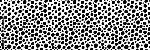 Black and white circle seamless pattern. Minimalist style doodle texture ideal for fabric, packaging, gift wrap, or home decor. A modern repeating design. Vector Illustration background