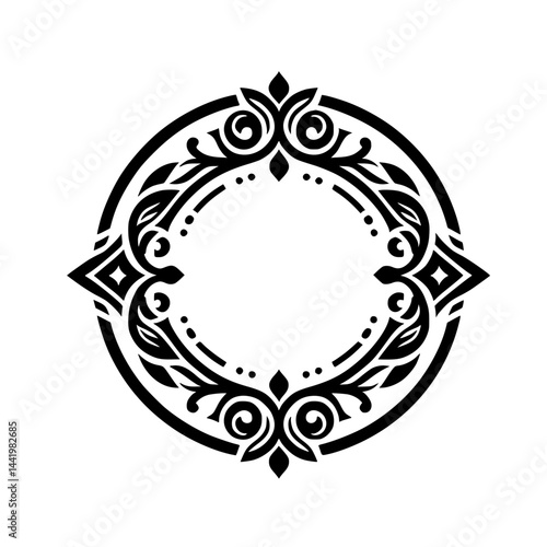 Black and White Circular Ornament: Elegant Floral & Geometric Frame Design Element for Logos, Labels, & Stationery
