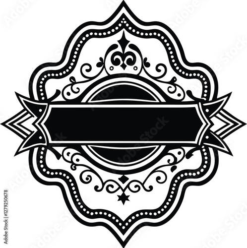 Black and White Classic Retro-Style Greeting Card Element with Vintage Badge Design, Distressed Textures, and Elegant Ornamental Flourishes in a Monochrome Palette, Monochrome Retro Badge, Vintage