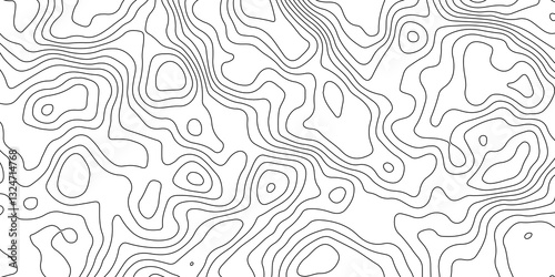 Black and White Contour Lines. Topographic Terrain Vector Background