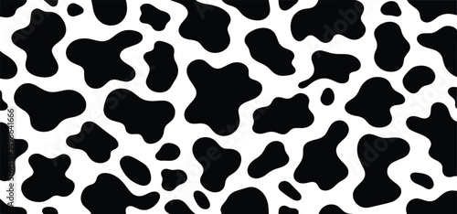 Black and white cow fur repeating texture. Animal print pattern or skin background vector illustration.