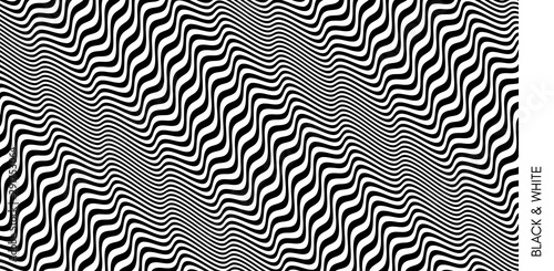 Black and white design. Pattern with optical illusion. Abstract 3D geometrical background. Vector illustration.