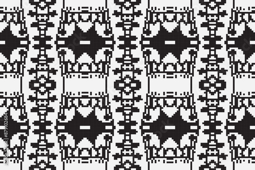 Black and White ethnic geometric seamless pattern. Geometric dark black background. Design for fabric, clothes, decorative paper, wrapping, embroidery, illustration, vector, tribal pattern