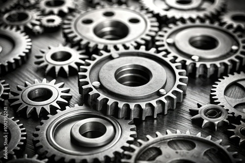 Black and white gears represent teamwork and business success, illustrating collaborative efforts, strategic effectiveness, and innovative solutions to achieve growth in a corporate environment.